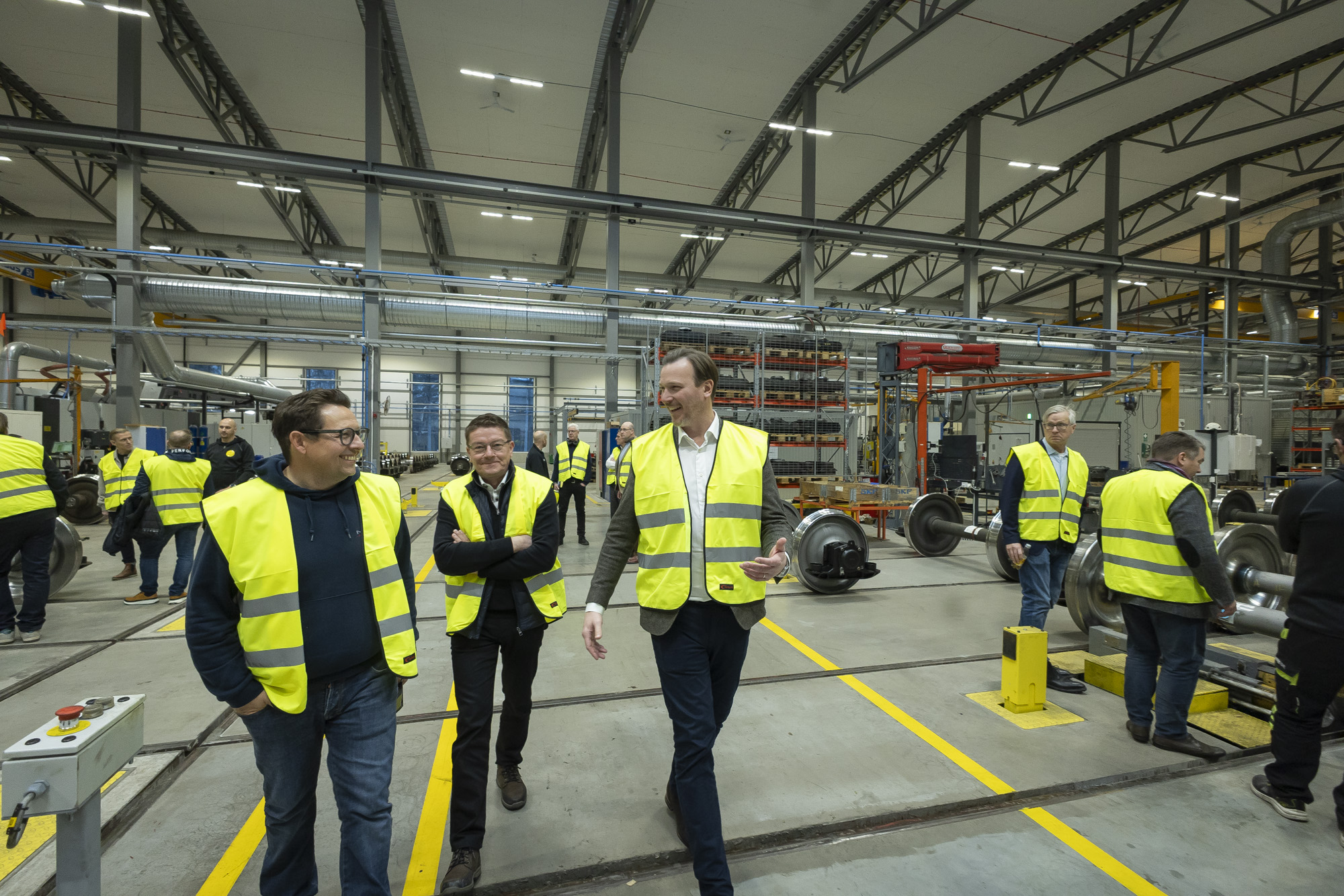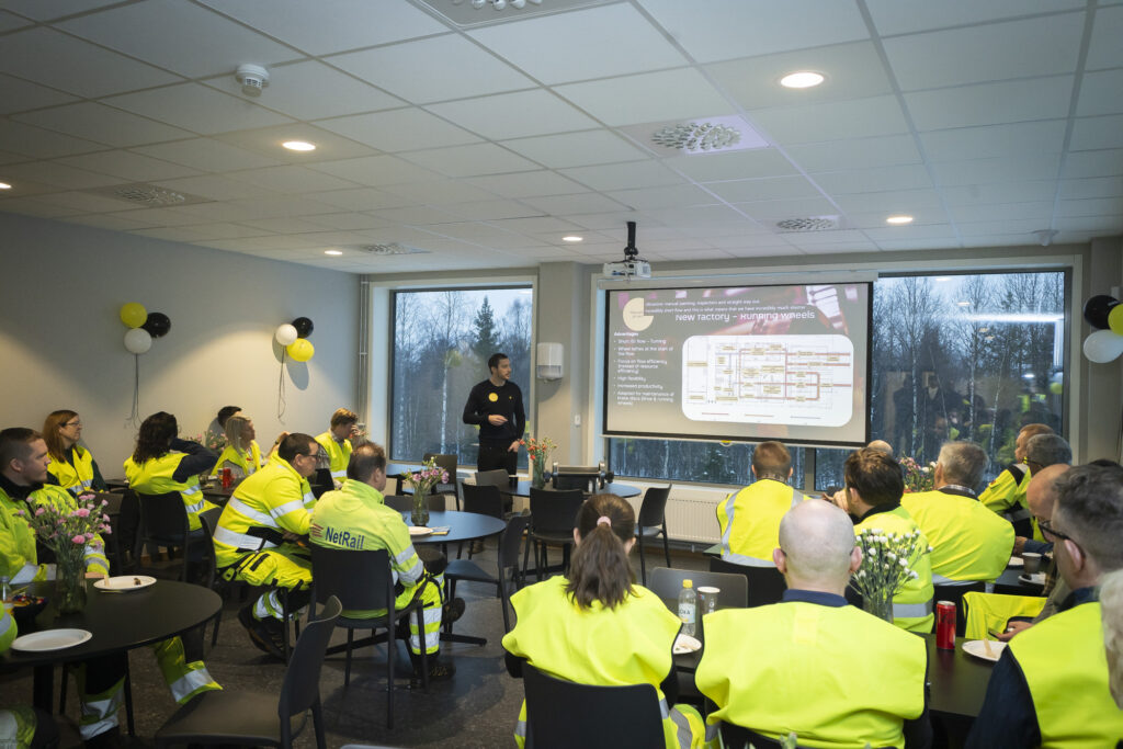 Båda dagarna inleddes med mottagande och mingel med besökarna, följt av en timmes guidad tur ute i produktionen. Rundturerna leddes av våra medarbetare som tog besökarna från arbetsstation till arbetsstation ute i den skarpa produktionen. Där fick de bland annat en genomgång av det nya arbetsflödet, de olika stationerna och alla nya maskiner som installerats i samband med flytten. Som avslutning höll vår tekniske chef Daniel Berglund en övergripande presentation av anläggningen, själva byggprojektet och framtidens Duroc Rail.